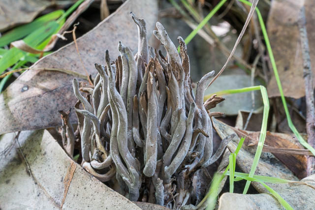 One fairly common fungus that we found was Omphalotus nidiformis. This has the common name “Ghost Fungus” as it goes in the dark. I took a bit hoe and late that evening, after dark photographed it –