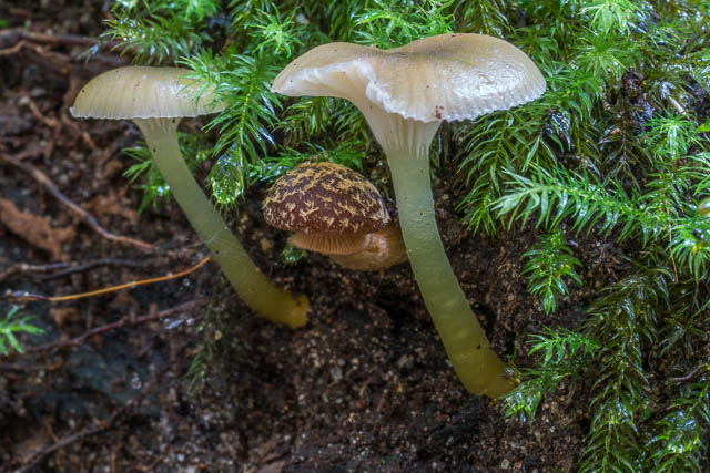 At Porters Creek area, I was very pleased to see some very viscid green waxcaps coming out. These are the ones I think are Gliophorus psitticinus. This would mean more visits would be needed to see how they change.