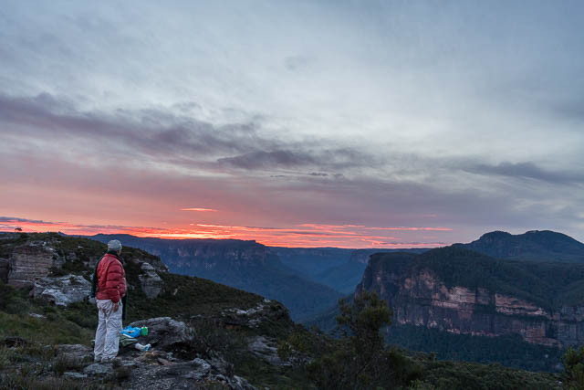 Dawn was nice, but from our campsite, the low sun was blocked by the bulk of Mt Hay. There was no mist in the Grose Valley. But still, the grandeur of the place is superb.