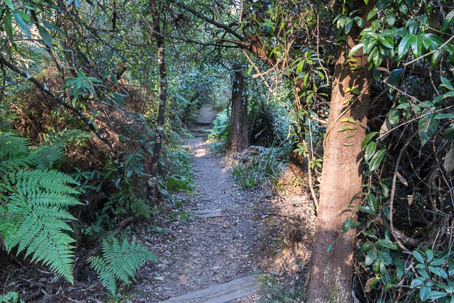 Section 3 is around the suburb of Castlecrag. The streets of Castlecrag all seem to have rather whimsical names – e.g. the Palisade, the Outpost, The Bulwark, the Citadel etc. The best part of this section is the start, where the track goes through a nice remnant of rainforest at Sailors Bay Creek. As well as some nice orchids there is also a rather nice waterfall lower down the creek. Again, its one I will need to return to after rain.
