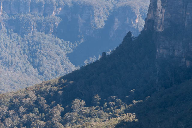 This was a very interesting walk with Bob in the Kedumba Valley. Many years earlier, I had observed a detached pinnacle under the Kedumba Walls. On a recent trip, at Sublime Point, with the benefit of late afternoon light and a telephoto lens, I could see that there were in fact three pinnacles all in the one area. Bob had seen my photos and was keen for a look.