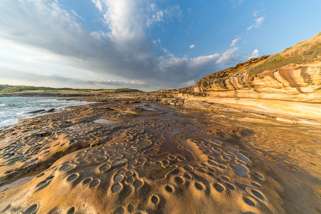 When it had cooled off a bit, and when the Sun was a bit lower, we went around to the Western side – to the wreck of the Minima and the beautiful rock platforms. This is one place on the east coast that you can photograph the sun setting over the sea (Botany Bay) because of the layout of the headland.
