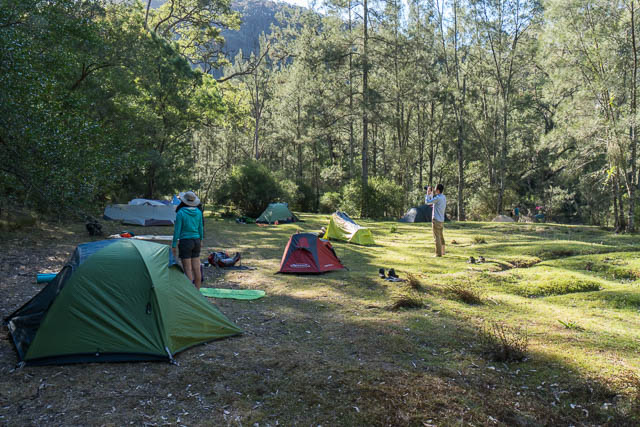 The party set off from Kanangra Walls on the Saturday morning, and after some photography on the plateau, soon started walking down the Gingra Range. Part way along, we turned off down Hughes Ridge and arrived at the Kowmung River in the mid afternoon.