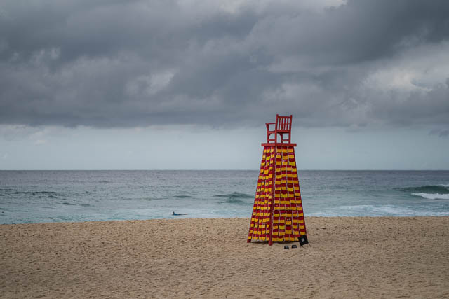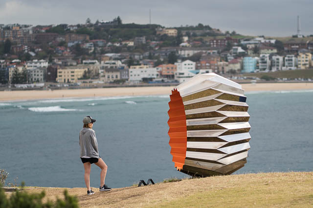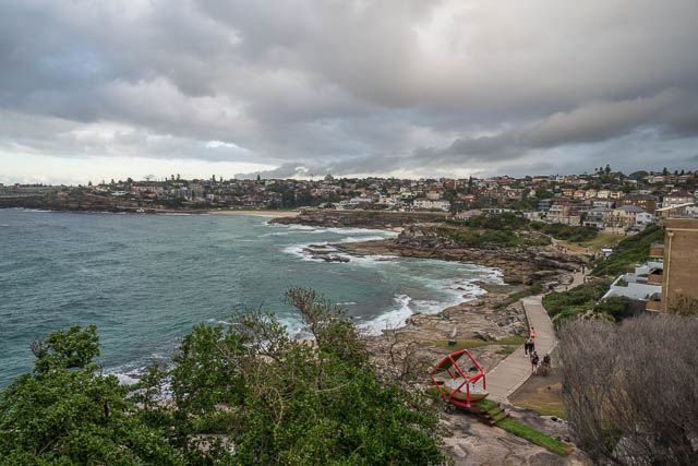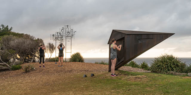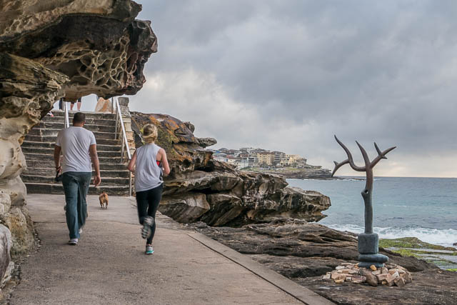 I made a visit to Sculpture By The Sea on the morning of 26 October 2017. I caught an early train to Bondi Junction, then walked down to Tamarama Beach, arriving just before sunrise. Getting up early was worth doing, it was a nice atmospheric sunrise with a big cloud bank adding some drama.