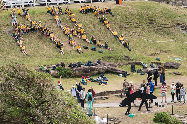The movie concludes with some clever students (I think from Maroubra Bay Public) arranging themselves to form the word “Art” on one of he grassy banks above the path. I didn’t plan to film this and was lucky to be able to include it in the time lapse section of the video. Here is a still shot taken at the same time –
