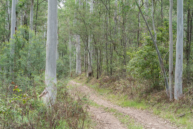We headed up the Putty Road and turned off along the Culoul Range. This fire road is in quite good condition and we had no trouble driving all the way out to the end of the road at Hollow Rock in David’s small 2WD car. I think this is about 12 – 13 km. On the way out we stopped at Jonathans Knob – a small basalt cap on the range (one of two) – an area that used to have cattle on it. It is a grassy area with a lot of nice tall trees.