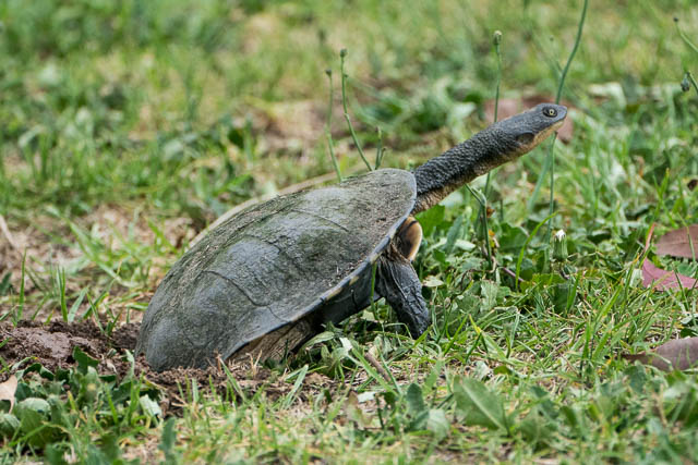 A turtle had dug a hole and was laying eggs. On a visit about a year earlier I had noticed a similar thing – a turtle that had started digging a few holes. This time I moved away quietly and started watching from a distance.