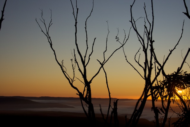 Splendour Rock is the Bushwalkers War Memorial. It juts out from the south end of Mt Dingo in the Wild Dog Mountains. Its a great place for a high camp. A great place to enjoy sunset and sunrise. A great place for magnificent views over a large chunk of the Southern Blue Mountains.