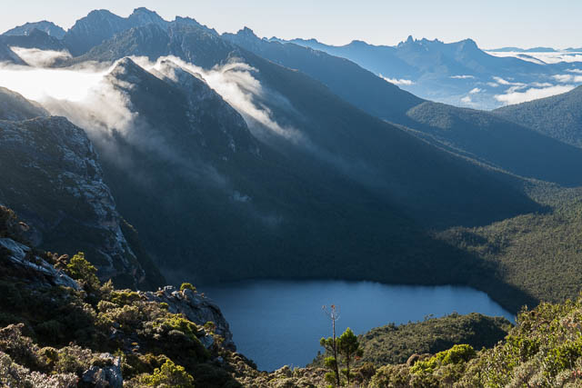 We had a pleasant evening at Lake Oberon, camped on the tent platforms, except for Steph who wanted a waterfront campsite. Next morning was fine and cool.