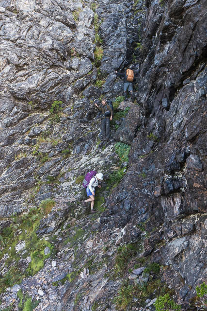 Then followed great section where the route follows a tortuous path, steeply down, then along a balcony posted above Lake Uranus, then up past some pinnacles to the other side of the range, then another steep descent and a traverse to reach the saddle before Mt Capricorn. An amazing route! If you don’t like scrambling then it is not for you.