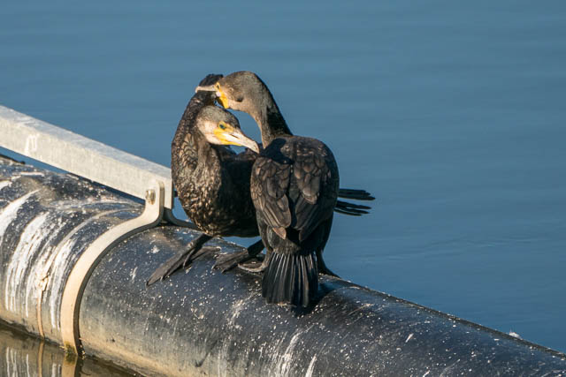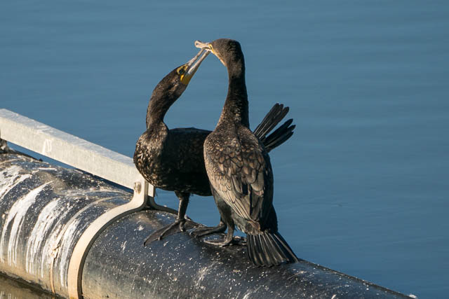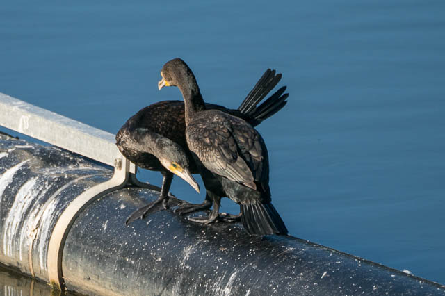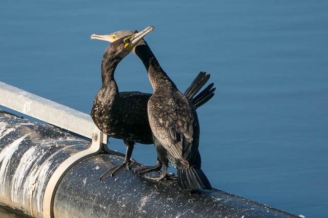 It was interesting to see what I presume is courtship behaviour between two of the Cormorants. They started by touching their beaks. The one grabbed the other ones tail feathers. After a while, the second one did the same thing.