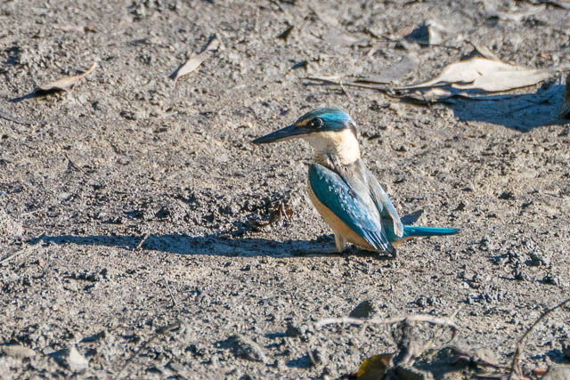 When I got close to Tempe Station, as I was crossing the bridge, I spotted a Sacred Kingfisher, perched on a parapet. I decided to get closer as try and get some photos. I managed a few before it flew off. I then crossed over the small stormwater drain to the downstream side and saw the Kingfisher on the mudflat. It had caught a mudcrab. It was interesting to watch –