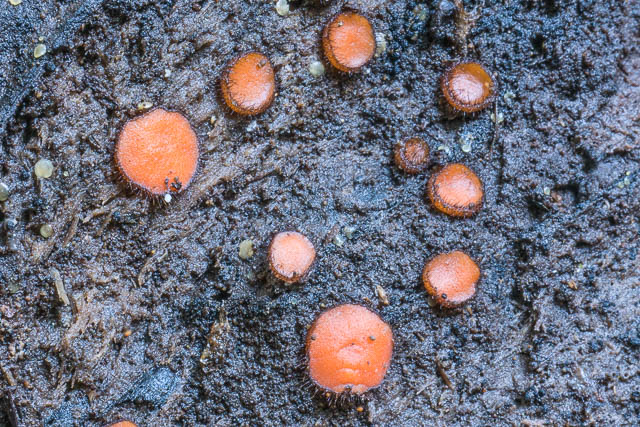 Another interesting find was this Eyelash Fungi. It looks the same as the one above, but was not growing on wood, but on soil. So it is likely to be Scutellinia margaritacea.