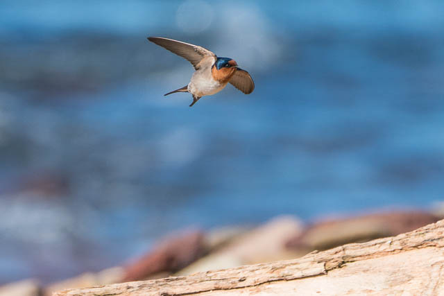 At Long Reef, there were a lot of birds a long way out, but the tide was high so I spent some time photographing some Welcome Swallows.