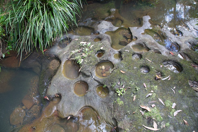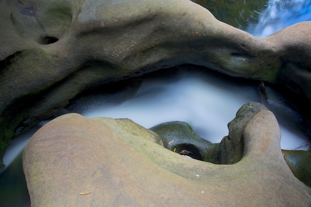 The most interesting feature of the walk was a section of quite amazing creek sculpture at the crossing of Waitara Creek. According to online notes, locals call it “The Spa”. I spent a fair bit of time here waiting for the right light for photographs of it – with only limited success. It was also a nice place to stop for lunch.