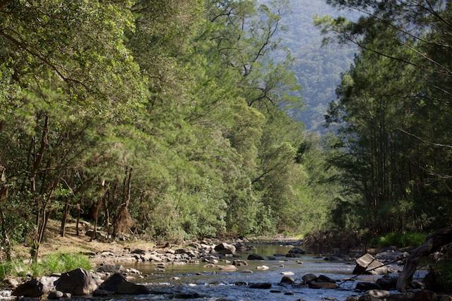 At the Coxs River, we camped just below the Breakfast Creek junction on a nice grassy bank. While John and Chuin Nee entertained Jasper, I spent a bit of time photo-pfaffing along the riverbank. Not far downstream was a nice large swimming hole. A swim was a must. The water was very pleasant.