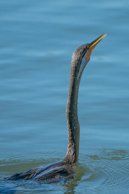 The Darter later lowered itself into the water and managed in a few minutes to catch and eat a few small fish. I have watched darters before with fish and they usually spear them with their sharp beaks and bring them to the bank to detach the fish and then eat them. This Darter only caught small fish, and seemed to grab them in is beak like a Cormorant, and then toss them up in the air and catch them and swallow them in a nice action.