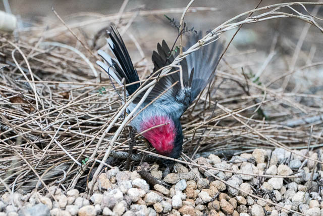 And to finish, I returned to the Rose Robin. I saw it dive for an insect on the ground. It looks like it was doing a face plant!