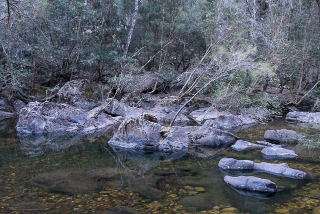 Further down, there is fine lookout that offers views of the Kowmung River upstream in the Bulga-Denis Canyon.