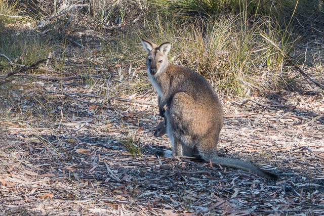 At the Kanangra Walls Carpark – we spotted one of the usual residents – a wallaby. And it had a joey!