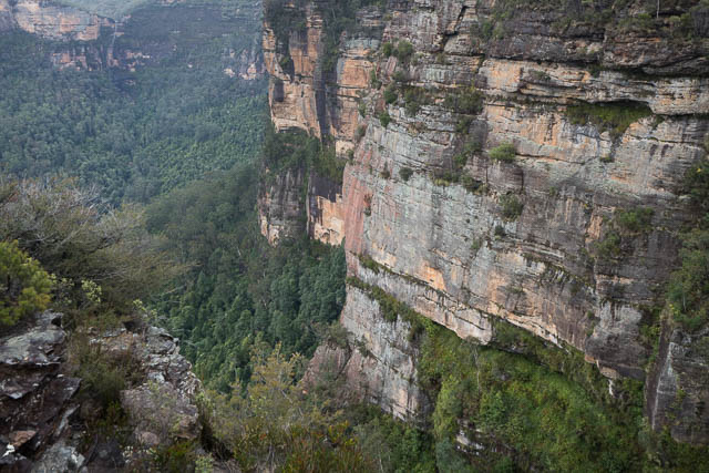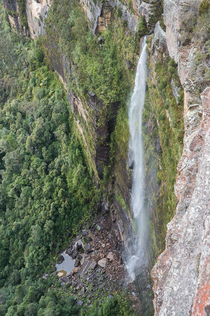 Horseshoe Falls are very impressive, and made more impressive with a good flow. The flow was quite good but not as good as I have seen it. Govetts Leap looked less impressive – perhaps its catchment is slightly smaller? Or perhaps its waterfall was being buffeted more by wind? Both of these waterfalls are about the same height – and must be the highest single drops in the Greater Blue Mountains.