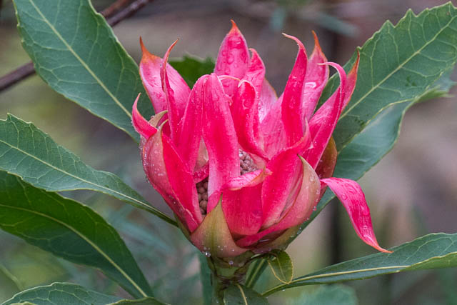 A wet day was forecast, and it was the day for a daywalk with Bob. We headed up the mountains and on the way discussed options. Something involving tracks and waterfalls sounded suitable. There had been a lot of rain in the upper mountains – and we decided on a walk from Govetts Leap carpark to Pulpit Rock and back. Along the way, we could sit out bad weather in caves or extend the walk in various ways if the weather was reasonable.