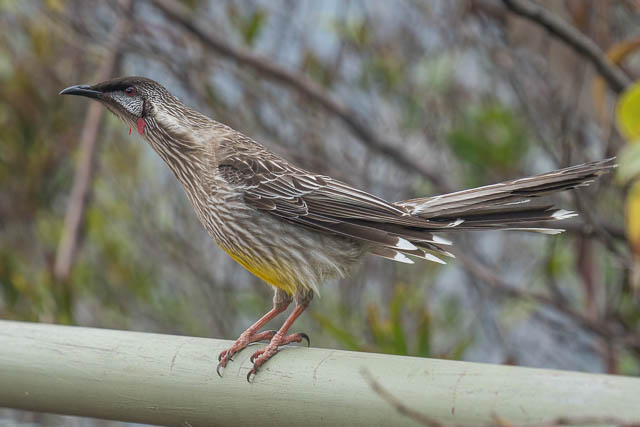 Here we met some Koala spotters. They had seen the Koala the day before and pointe out to us the tree it had been seen in. We looked at her trees but could not see any Koalas. But one of the spotters had seen some very fresh Koala scats below a tree and on the track.