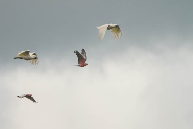 They later joined a big flock of Corellas and Sulphur Crested Cockatoos.