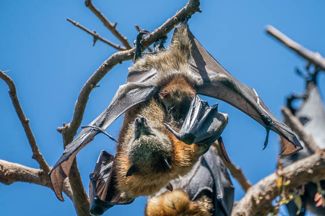 I had more luck with the Flying Foxes. At this time of the year, a lot of the females in their camp have babies. I was able to photograph quite a few with their babies. But I had no luck in photographing them flying with their babies holding on. Perhaps it was the wrong time of the day?