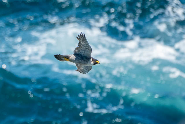 Further out, I spotted a Peregrine Falcon. It was sitting on a perch and seemed quite content to stay there for a while. I sat down to watch it, and then had lunch, keeping my eyes on it. It made no sign of wanting to move. Eventually, after about ninety minutes of watching, it did take off – and I did have my camera ready and recorded its take off with a sequence of photos.