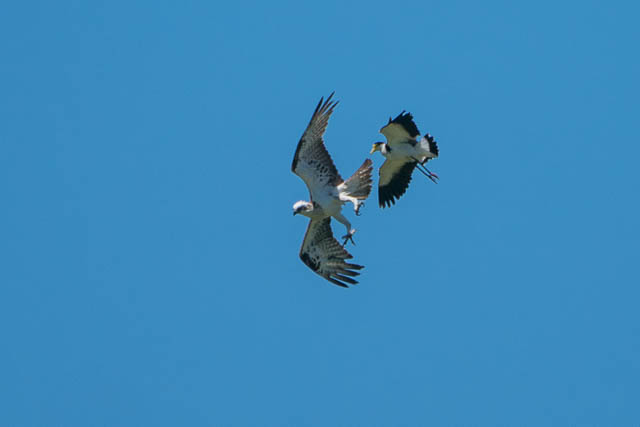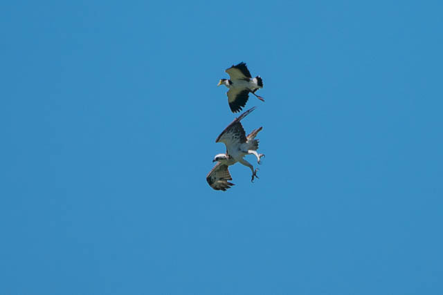 It headed a few hundred metres away and looped around. By this time it had attracted the attention of a Masked Lapwing. The lapwing had several dives at the young Osprey.