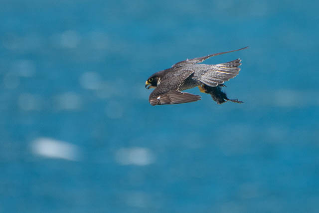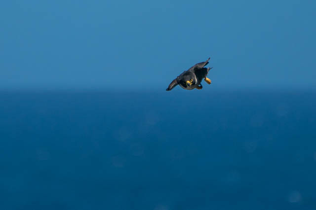 I then left the area and headed to the sea cliffs. None of the Peregrine Falcons seemed to be around. So I found a shady place and had lunch. Just when I was finishing I heard the call of a Peregrine Falcon. It flew past very fast and I was lucky to get a few photos of it. From the photos I could see that it had some prey.