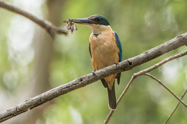 While I was having lunch, I again heard the Sacred Kingfisher. This time I saw it perched in a tree and it had a moth in its beak. It then flew off, too fast for me to see where it went. I then heard it again, this time with no prey.