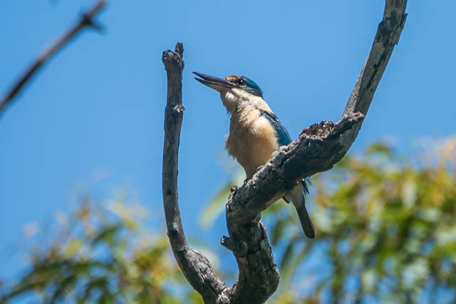 I continued right around the point to the enclosed swimming area. There I had a swim and found a shady place to have lunch. After this I climbed up to the road and followed it to the lookouts above the point. Here I could hear the call of a Sacred Kingfisher. I crept closer and managed a photo.