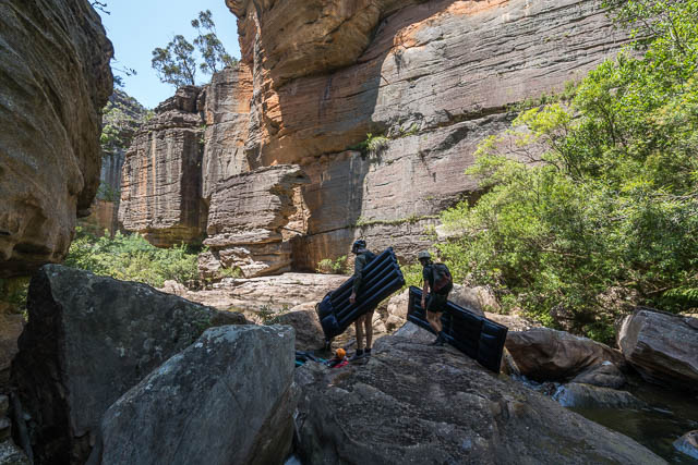 On Saturday, we visited one of the lower sections of Wollangambe Canyon. My previous visit to this section was on an overnight trip back in 2009. This time, we planned to not go as far downstream. The party was Enmoore, Wendy, Keith and myself.