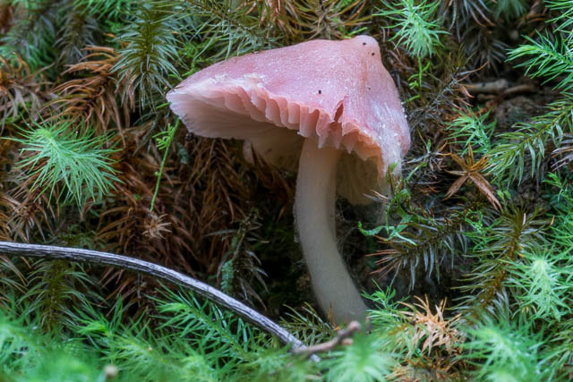 And this one may be the white waxcap, Cuphophyllus virgineus.