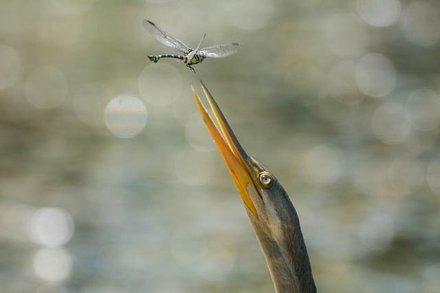 But it didn’t seem to know how to do it. One time, a Dragonfly actually settled on its beak. The Darter didn’t know how to handle this!