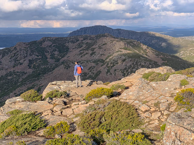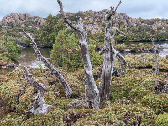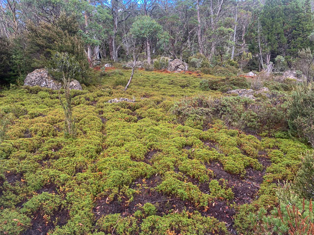 At the end of the lake, it is a short walk down to Lake Adelaide. We had wanted to reach at least that lake before camping, but it was still early afternoon, so we continued along the track back towards Trappers Hut. We passed some nice campsites that I had noted on earlier trips, and many amazing Cushion Plants.