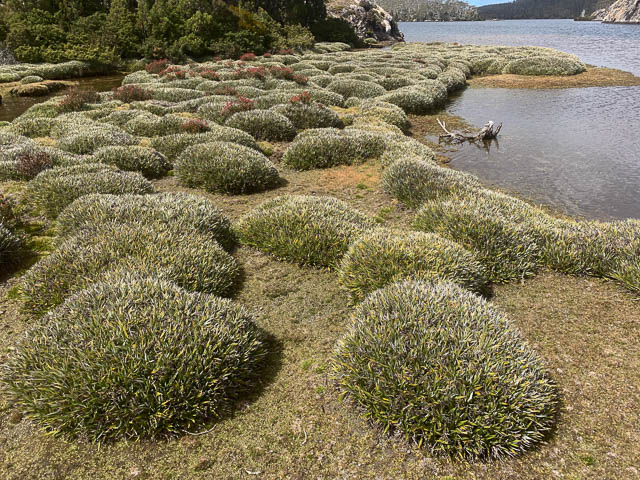 We had lunch at a sunny spot above the lake. Further along are some interesting formations of Pineapple Grass. More photos…