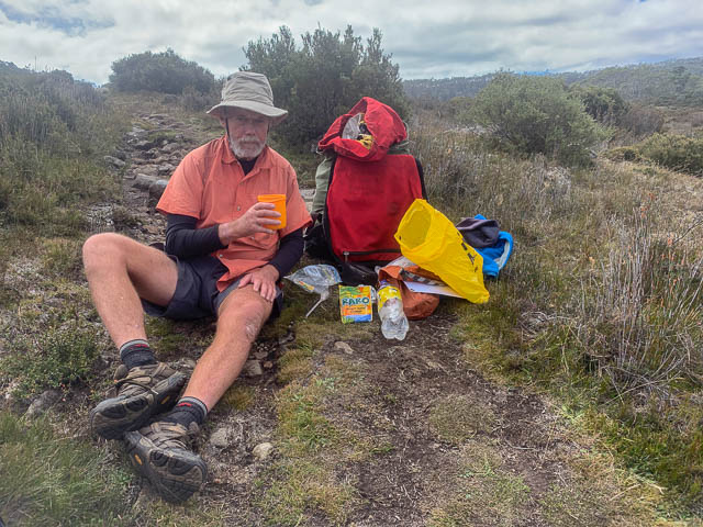 We passed the campsite at Wild Dog Creek, and continued on to the Central Valley. This is exquisitely beautiful. We passed Lake Salome and then the Pool of Bethesda to camp in small thicket of pencil pines at the top of the valley. It was still overcast and a bit windy – but dry so far.