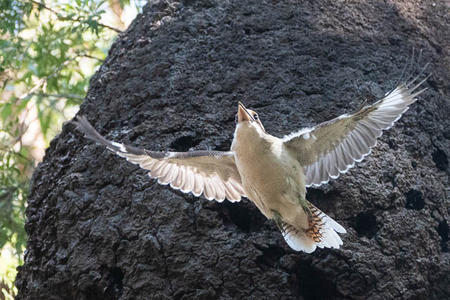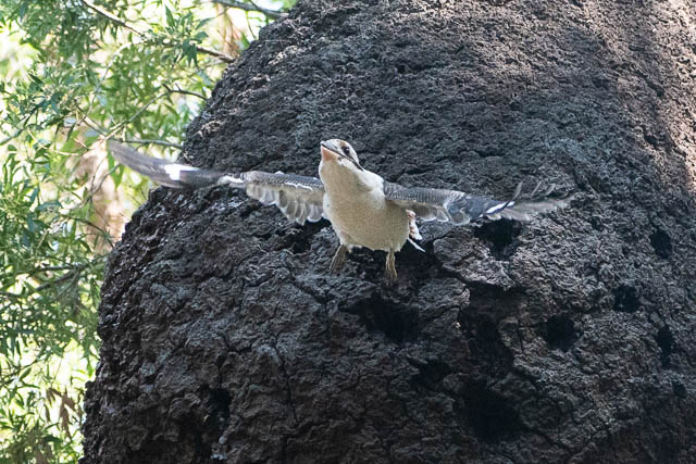 Later, on the mangrove boardwalk, we saw a pair of Kookaburras drilling a nest hole into a large termite nest high in a tree. One of the birds would fly to the tree, do a little drilling, get tired, then fly off for a rest.