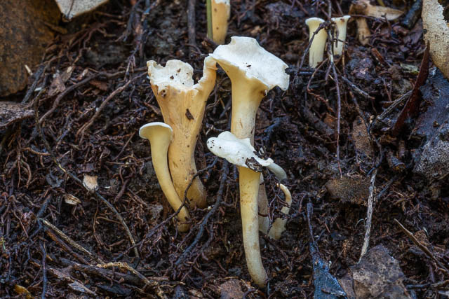 I then took a side track. I assumed it would lead up the hill to the fire road. It did climb steely at first, and I found an occurrence of a “Craterellus” type of fungi that I had seen quite a few times previously. Other places where I have seen it are Coachwood Glen and Sassafras Gully. When we found it in Coachwood Gully – we thought it could have been a Gomphus or a Craterellus or perhaps a Cantherellus. I think I know know what it is – Gloeocantharellus novae-zelandiae.