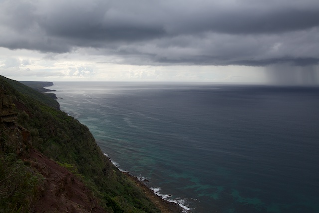 Our walk was a circular path – first along the escarpment – high above the sea, then down through rainforest and a palm jungle to the beach itself. We returned by the path to Garrawarra and then back along the tops to rejoin the track that we had used on the way in.
