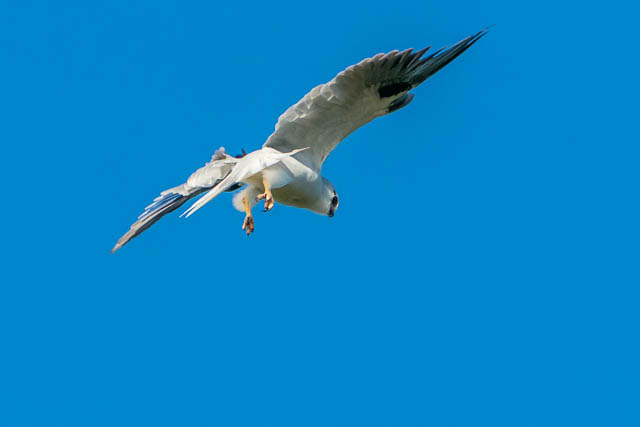 But this was interrupted. A Black-shouldered Kite flew overhead and then started hovering, scanning the ground for prey, not far away. I took a few photos before it dived out of site behind some bushes.