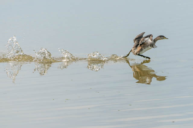 My next photo opportunity was provided by some squabbling Grebes. One decided to fly off, or rather, because they are “reluctant fliers” to run across the water with flapping wings.