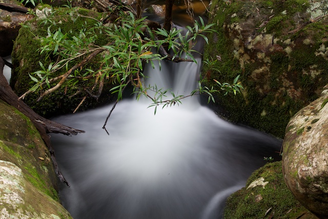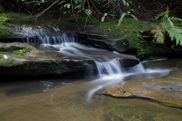 This time, I set off from Faulconbridge with a camera and tripod. The Victory Track starts near the railway level crossing. It soon leaves the houses and enters a world of ferns and tall trees. The creek picks up pace and soon tumbles over Clarinda Falls.