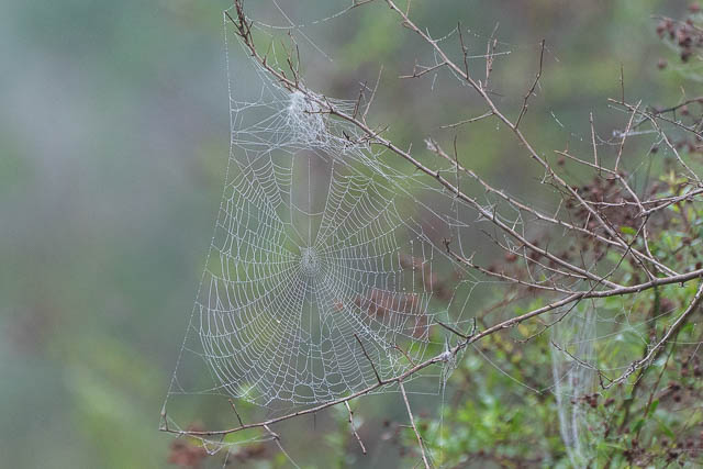 I then walked around the perimeter trail. Again – nice misty conditions and apart from a few spiderwebs and trees in the mist, little in the way of birds.