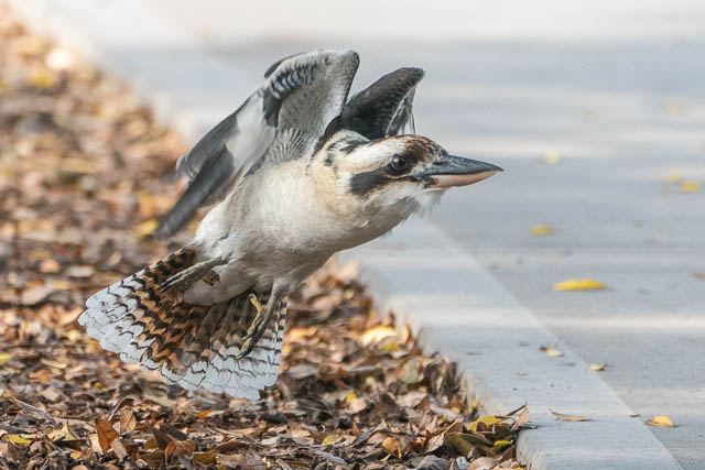 Back at the main ponds, I took a sequence of photos of a Kookaburra taking off.