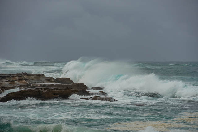 With the adverse forecast, some of the participants pulled out, but that still left – Brian, Paul , Sue, Valerie, Kay and myself. We had showers on and off most of the day, and there were plenty of wet bushes, and it was also quite cold. But not too much suffering was endured. The bush was beautiful. A number of wildflowers were out, the birds were singing (but not when my camera was out) and the sea was powerful. Very powerful indeed. It was the high sea that made the trip memorable.