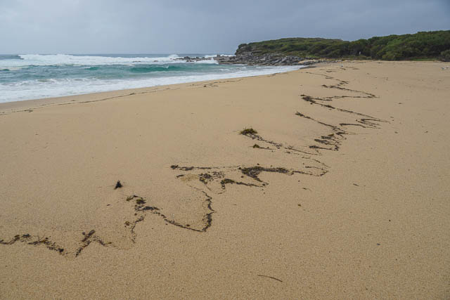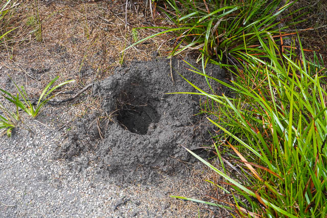 Then we returned to Little Marley, and then back to the road the same way we had come via the Deer Pool. Just past the beach, we noticed this hole in the dirt next to the track. It was quite large and deep. We wondered which animal had made it.